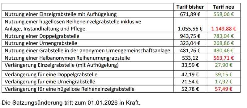 Die Änderung soll in der kommenden Gemeindevertretung am 04.12.25 beschlossen werden und bei Zustimmung treten die neuen Gebühren ab 2026 in Kraft.