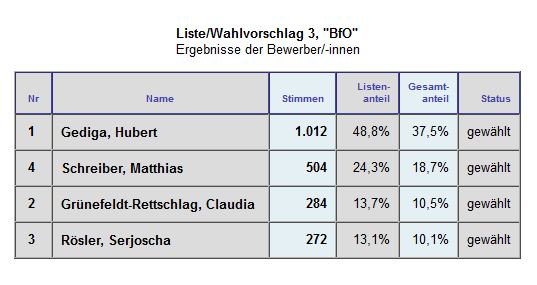 In müde aber dabei strahlende Gesichter blickte man bei den Vertretern der BfO, als in der Nacht zu Montag gegen 02:30 Uhr das vorläufige Endergebnis der Wahl zur Gemeindevertretung feststand.