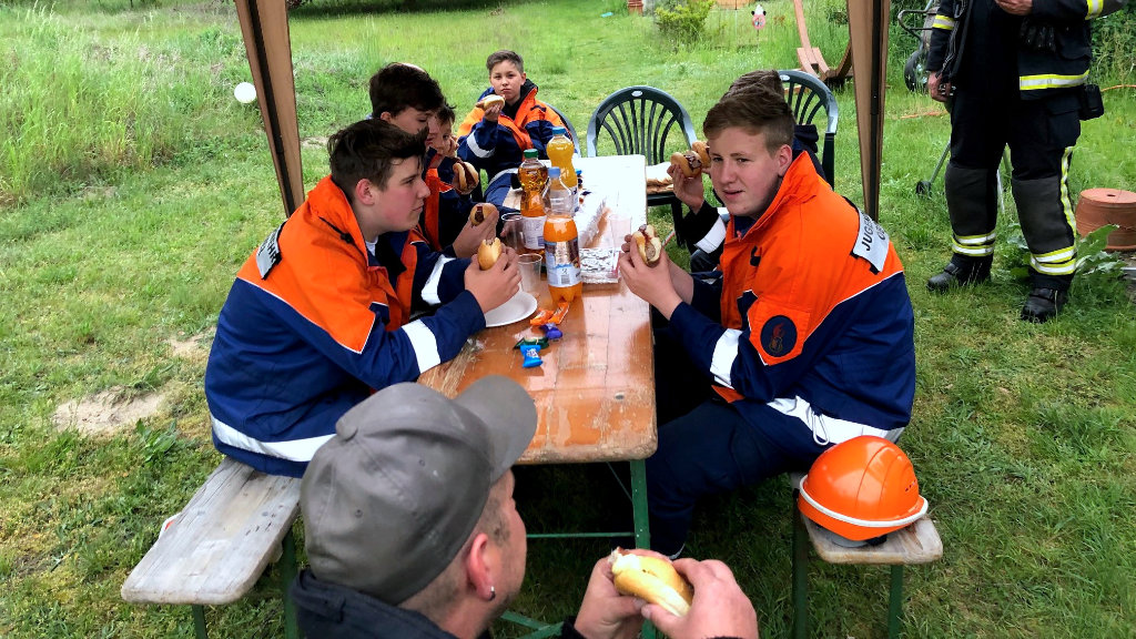 Nachdem „Einsatz“ warteten zur Stärkung dann Bratwurst und Brause auf unseren Feuerwehr-Nachwuchs.